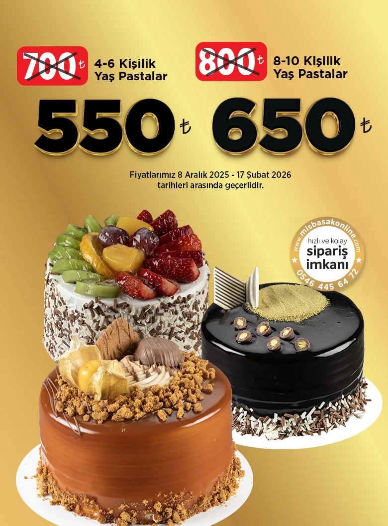 Misbaşak’ta pastacılık; malzemenin kalitesine, ölçünün dengesine ve ustalığın sabrına dayanan bir özen işi. Her katında tazelik ve lezzet dengesi gözetilen Klasik Yaş Pasta, yumuşak pandispanyası ve hafif kremasıyla kutlamaların güvenilir yıldızıdır.